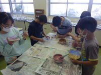 最後に取り組んだのは5年生です。筆を振ってしずくで色付けをする等、工夫しながら仕上げていました。