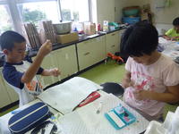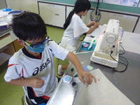5年生は来週末に、水俣・芦北方面への集団宿泊学習を控えています。今日(9月11日)は、その時に使えるよう家庭科の学習でナップザック作りに取り組みました。