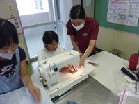 次にしつけ糸を使い仮縫いをします。慣れない作業に苦労したようですが、お互いに声を掛け合い助け合いながら頑張りました。