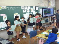 渋滞のため、予定より少し遅れましたが、環境学習を行っています。水環境問題では、パックテストをしました。積極的に質問して、しっかり学ぶことができました。何と高木小が今年初めての訪問校だそうです。
