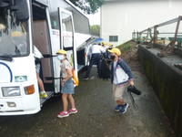 出発式を行った後、みんな笑顔でバスに乗り出発していきました。