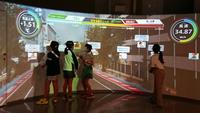 巨大なスクリーンに映し出される問題にチャレンジしています。学習の成果で、無事に正解できたのでしょうか?