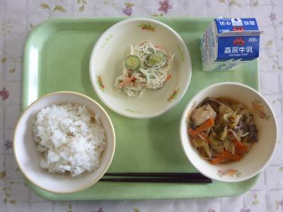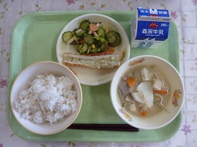 麦ごはん、豚汁、元気サラダ、ちくわのマヨネーズ焼き、牛乳