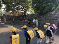 最後は、メンバーが集まって、今日良かった班やあいさつ名人について出し合い確認しています。