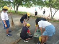プールサイドをきれいにしてくれたのは4年生です。上学年の仲間入りをし、責任感をもって頑張ってくれました。3年生は、2時間目にプール周りの除草をしてくれました。