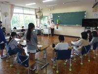 5年生では、昨日(10月11日)英語の研究授業が行われました。「オリジナルタウンで道案内をしよう」という単元で、この時間は、道案内をゲーム形式にして取り組む学習でした。