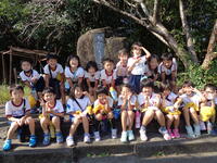 今日(10月4日)は、朝から素晴らしい快晴でした。そこで、物語の中でちいちゃん家族がやっていた「かげおくり」という遊びを3年生もやってみました。