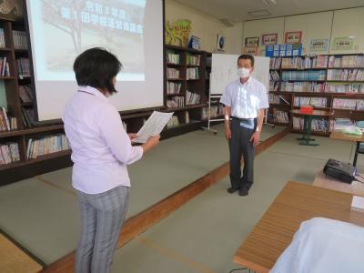 第一回目は、教育委員会からの委嘱状の交付があった後、会長・副会長の決定と学校経営方針の承認が主な協議内容でした。会長は引き続き北本様にお願いすることになりました。副会長は本年度から公民館分館長になられた髙森様にお願いすることになりました。