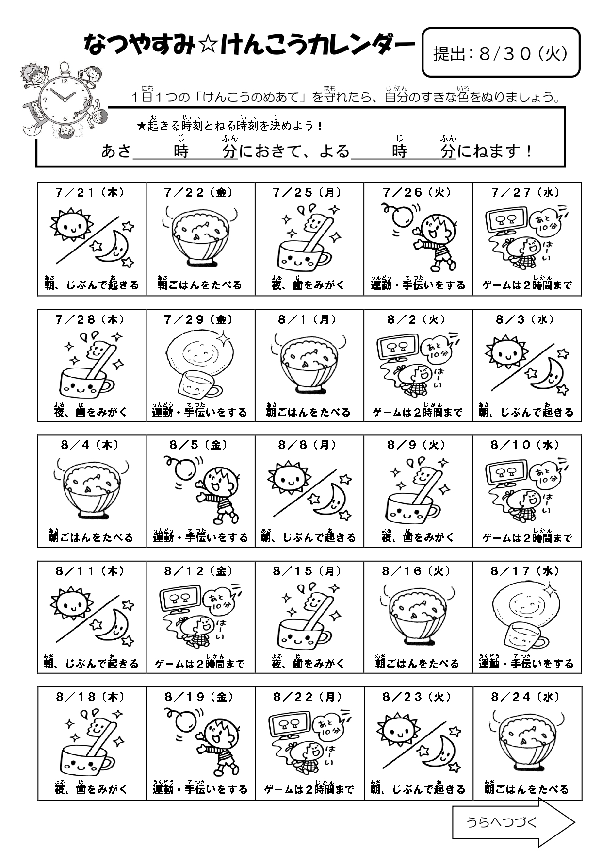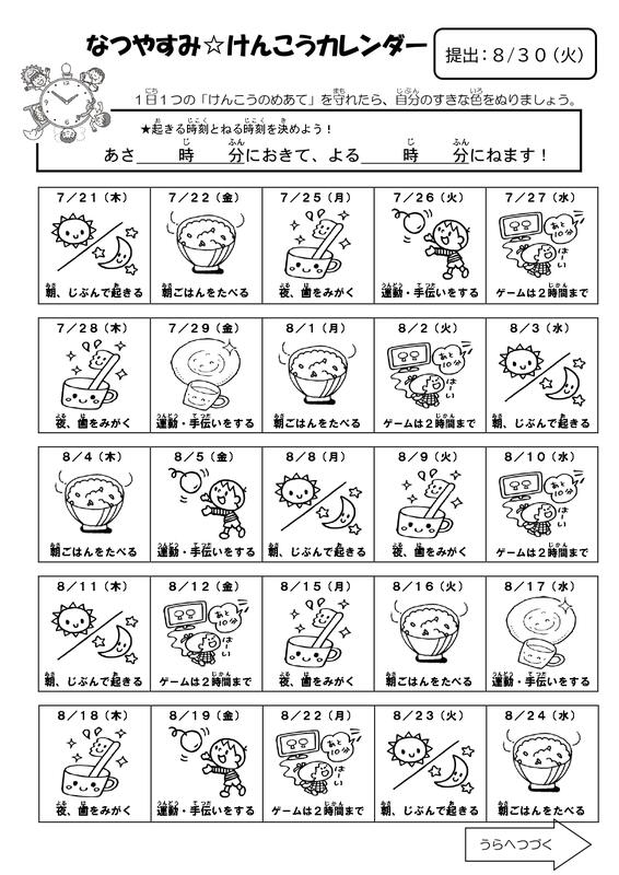 夏休みけんこうカレンダー