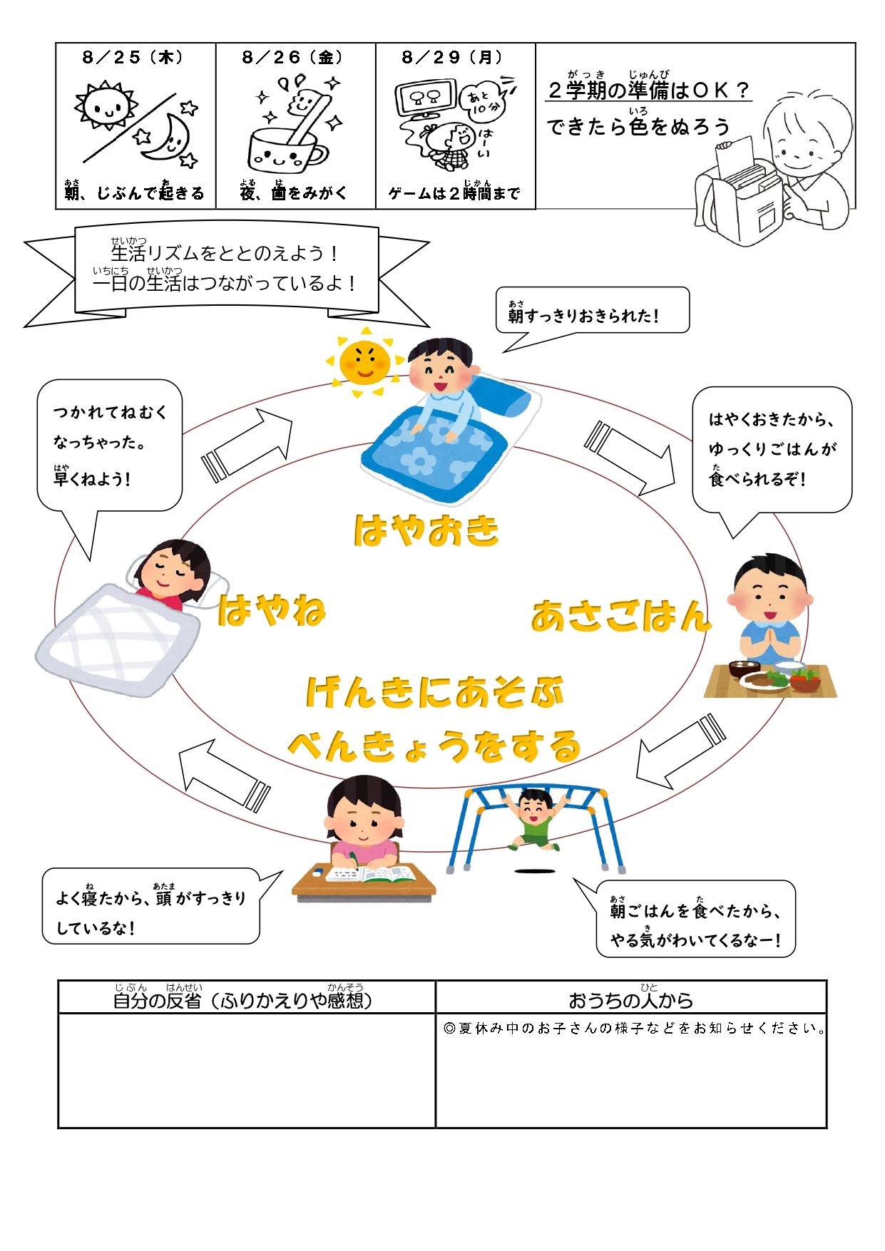 夏休み中も生活リズムを整えるために、けんこうカレンダーに取り組みましょう。