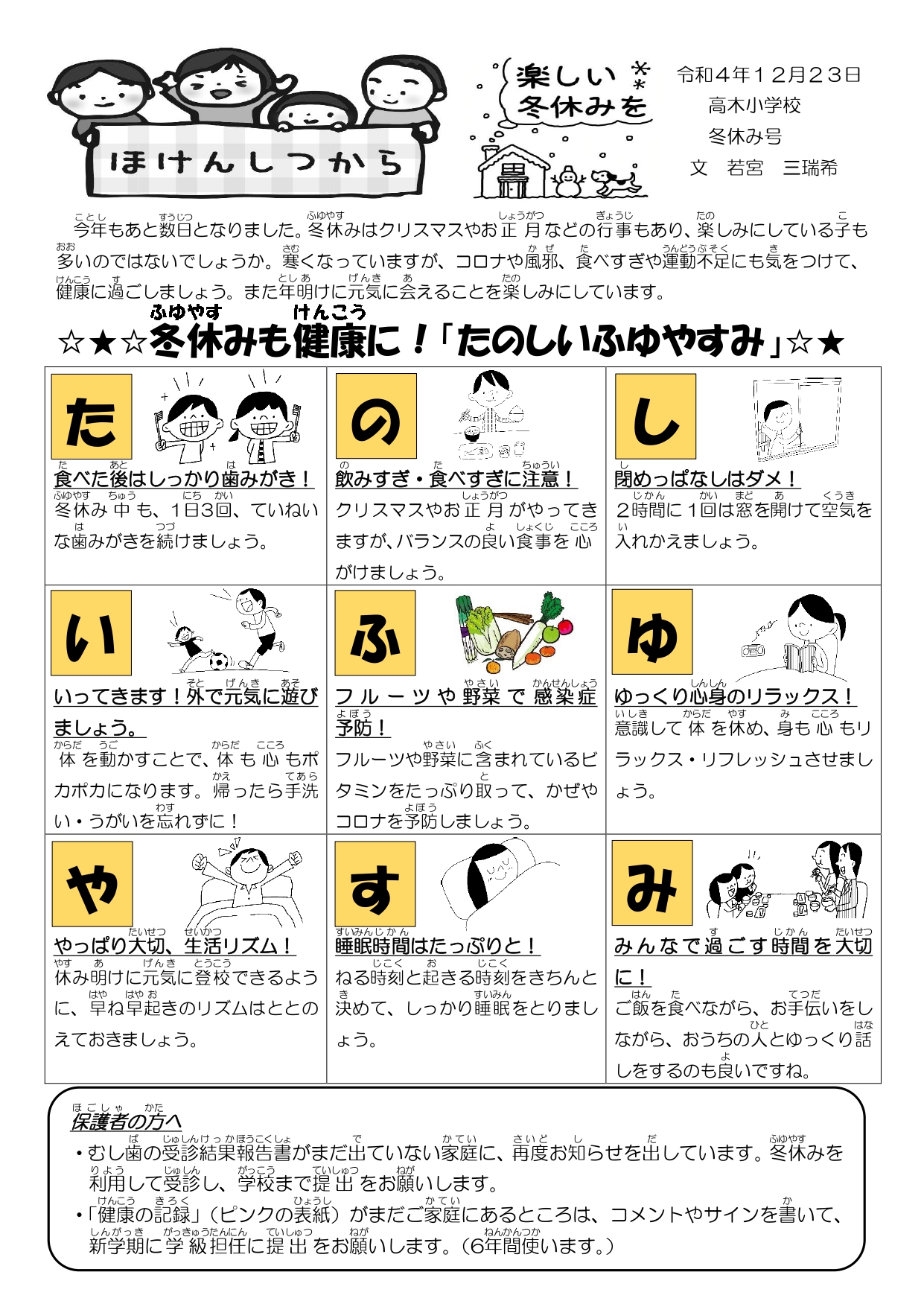 保健だより 冬休み号