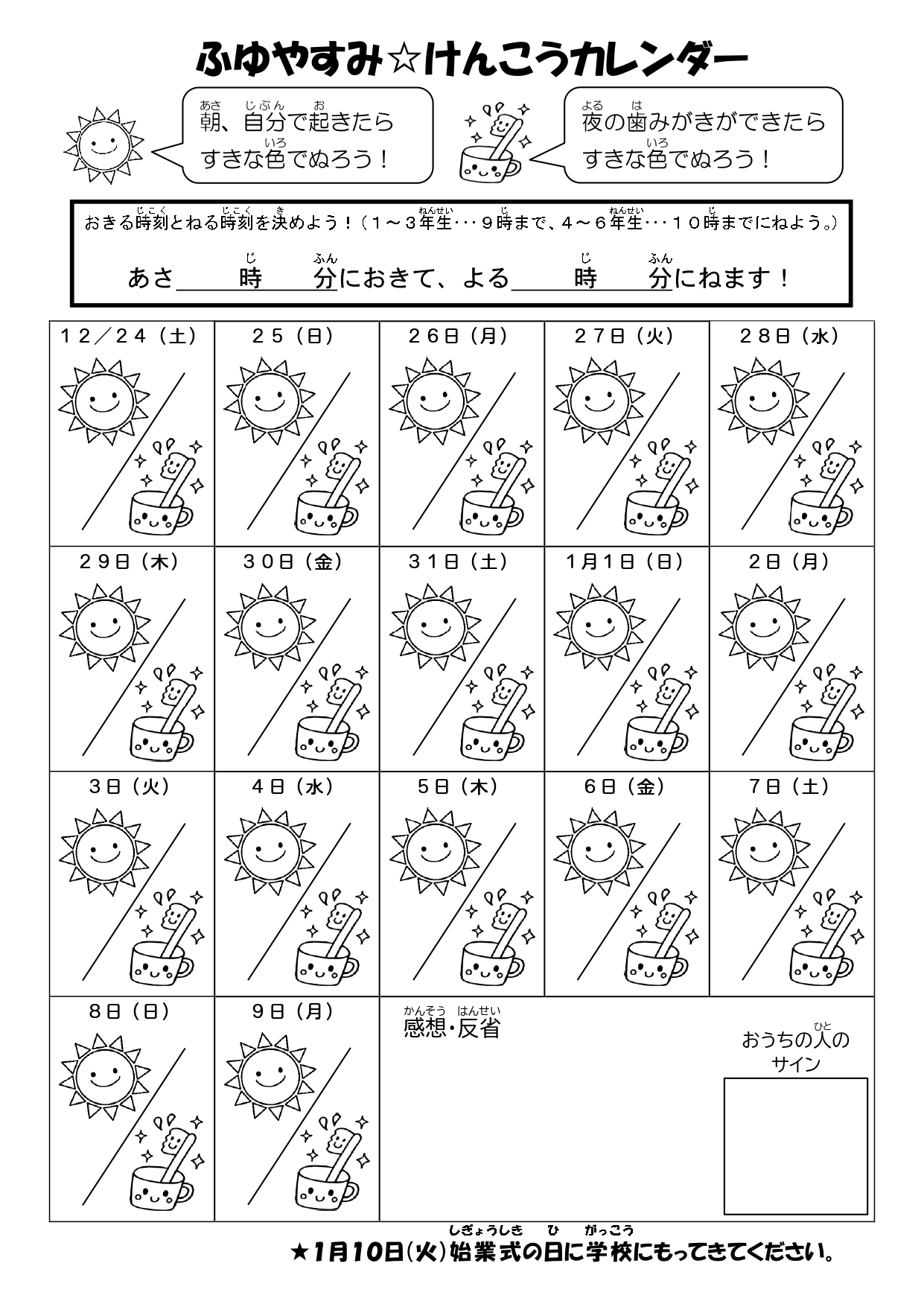 冬休みけんこうカレンダー