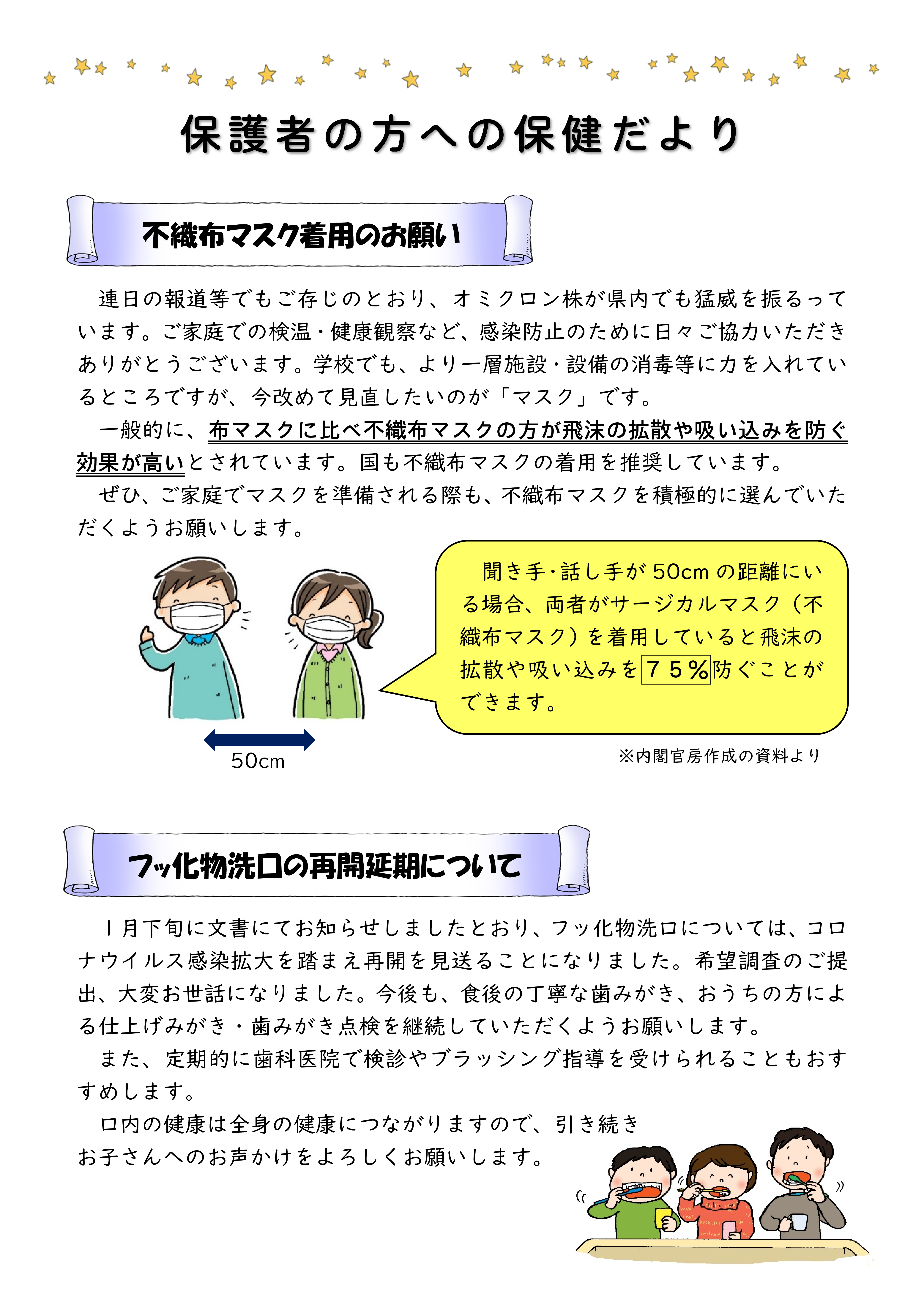新型コロナウイルスに関する感染予防および感染拡大防止対策について、本日(2月26日)配布の保健だよりに詳しく記載しています。