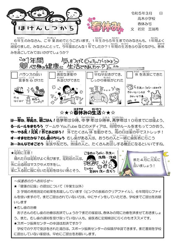 保健だより 春休み号