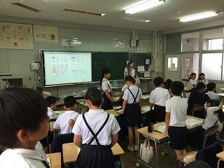 5年生では、ALTの先生の好きな色や動物などを予想し、英語を使って当てるゲームで盛り上がりました。