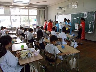 保健体育委員会の子どもたちが、各学年に歯みがきのアドバイスをしています。