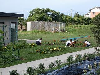 朝から6年生の子どもたちが花壇の草取りをしてくれていました。