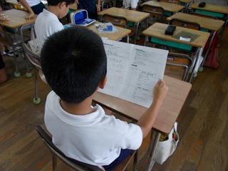 子どもたちは、「12才の主張 発表会」へ向けて、意見文を書いています。その意見文を友だち同士で聞き合って、質問や助言(聞き合い)をしました。この聞き合いを通して、意見文の内容をさらに深めることができました。