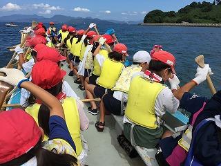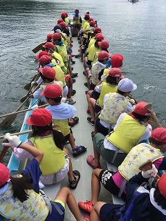 集団宿泊教室の2日目は、ペーロン船に乗りました。