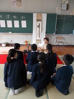 ゲストティーチャーを招いて、お茶の点て方やおもてなしの心について学びました。