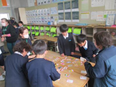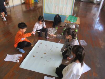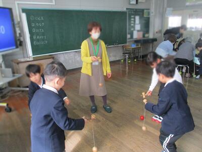 ①地域の人と一緒に昔遊び カルタにけん玉、お手玉、おはじき、あやとり。日本に昔から伝わる遊びですが、今回初めて経験する遊びもあった様子です。11人も地域の先生が来てくださったので、遊び方を教えてもらったり、うまくいくコツを教えてもらい何度も挑戦したり。ワイワイ賑やかにあっという間の1時間でした。皆様ありがとうございました。手軽にできて、手も頭も、体も使い、相手とのやり取りも楽しめる。ぜひお家の人とも楽しんでみてください。