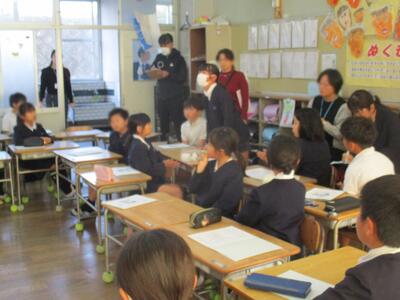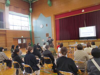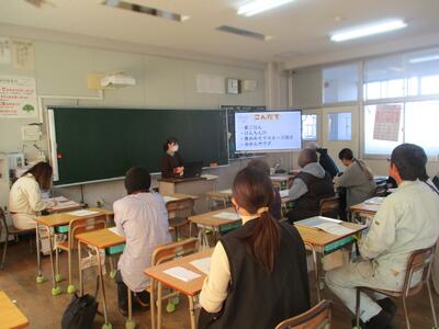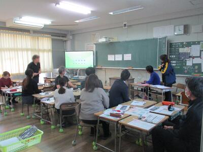 保護者のみなさんは、学校からの説明のあと、親の学びプログラムを体験されました。熊本県社会教育課からおいでいただいた坂口さんの進行で、グループごとに語り合い、頷き合い、笑い合いながら、子育てについて学びを深めておられました。今回はぐくまれた「つながり」は、子どもたちにとっても保護者のみなさんにとっても、今後にいきてくるものだと思います。次は、2月の学校体験です。再会を楽しみにしています。本日は、ありがとうございました。