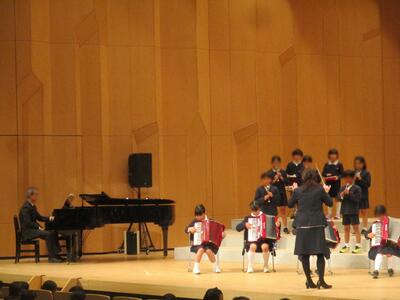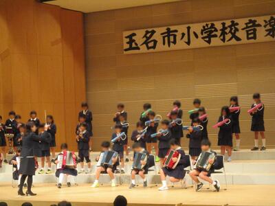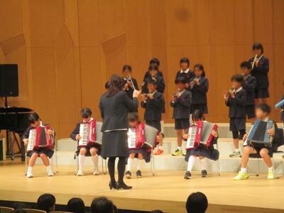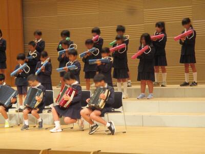 今日の音楽会に向けて、数か月間毎日毎日練習を続けてきた4年生たち。今日は、その成果を見事に発揮できました。緊張した表情でステージに上り整列。山口先生の指揮に合わせて、心を一つにしてスタート。友達の演奏する音をよく聞きながら、自分のパートを懸命に演奏する姿に、心がじいんと震えるようでした。講評をされた講師の先生からは、「全体的にしっかりまとまった演奏ができていましたね。心を一つに演奏しようという、皆さんの気持ちが伝わりました。打楽器の音量が程よく、旋律楽器をしっかり支えていて素晴らしかったです。アコーディオンも、しっかり練習されていたことがわかりました。」等など、たくさんのお褒めの言葉をいただきました。ここまでよく頑張りました。先生方もよく指導を続けられました。「ここまでできた!」という達成感をもてる音楽会になりました。4年生に大きな拍手を贈ります。