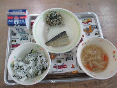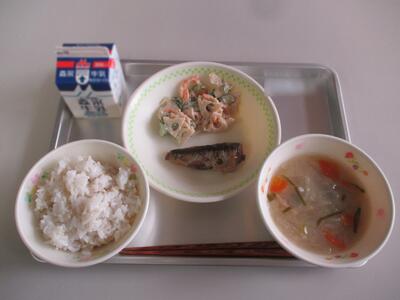 今日の給食は「ふしそうめん汁、サバの塩焼き、もやしとひじきの辛子和え」でした。11月24日が和食の日だったことにちなんで、今日は和食の献立でした。辛さは抑え気味でしたが、辛子和えは初めての人も多かったようです。