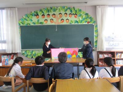 6年生がいないこの2日間、自分の役割をしっかりと果たして学校を動かす仕事をたくさん担ってくれました。おかげさまで、みんなスムーズに生活できました。ありがとう! 昼休みには、小北先生に本の読み聞かせをしてもらいましたが、そのあと、5年生が進んで大型絵本を読み聞かせしてくれました。頼もしいがんばりでした。