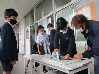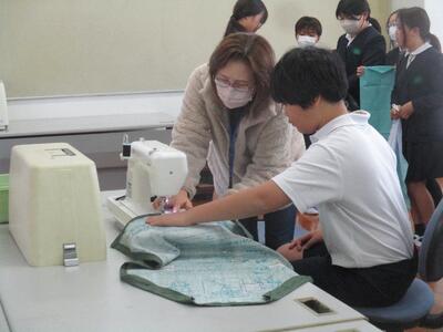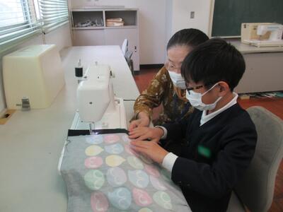 午前中、5年生のエプロンづくりに5人の地域の先生に来ていただきました。アイロンをかけてしつけ縫い、そしてミシンで本縫いという段階をふんで仕上げていきます。一人一人にやさしく声掛けをしてサポートしてくださるので、順調に進み、仕上げることができた人も多くいました。今日は教頭先生と阪本先生も手伝われて、どんどん進みました。いつも子どもたちの応援をありがとうございます。