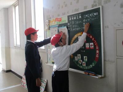 給食後、すぐに明日の献立を知らせる準備をしてくれた6年生たち。みんなのために役割を果たしてくれていつもありがとう!