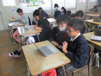 5年生たちは学級会で「お楽しみ会」についての話し合い、6年生たちは修学旅行での学びをタブレットでまとめる学習に取り組んでいました。自分たちで進める力が育っています。頼もしいです。