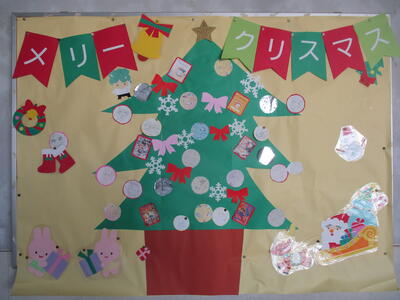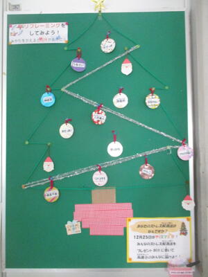 図書室前と保健室前に、クリスマスツリーが掲示されていました。どちらも子どもたちと一緒に創り上げる仕かけがされていて、子どもたちも楽しみに見ています。いつもアイデアいっぱいにです。