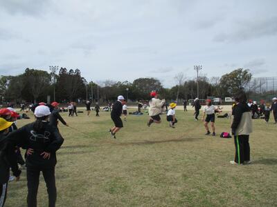 3年生たちは長縄にチャレンジ。連続で何回跳べるか、みんなで数をカウントしながら飛び続けます。友達の声援を受けて跳べた人もいました。こうして、いろいろな学習経験をとおして、子どもたちはみんなで伸びて行きます。
