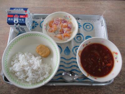 今日の給食は「コッペパン、ポークビーンズ、カボチャフライ、大根とツナのサラダ」でした。ポークビーンズは子どもたちに人気のスープです。私が小学生の頃もありました!美味しかったからでしょう、子どもの頃の記憶ってすごいですね。