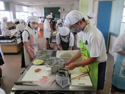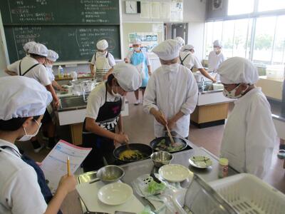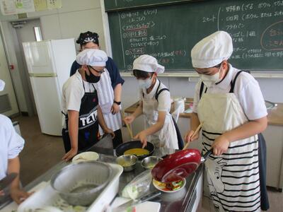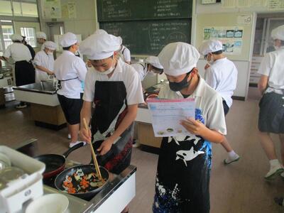 18日に、6年生たちは調理実習で「彩り炒め」と「スクランブルエッグ」をつくりました。自分で食べる分を自分で調理し、ペアの友だちが調理の様子を記録していきます。5年生の時に比べると、手際がよくなり、協力し合って安全に実習ができていました。さすがですね。美味しそうな香りが北校舎にも届き、他の学年の人も興味津々でした。ぜひ、お家でつくって、家族に食べてもらいましょう!やればやるほど上手になります。(包丁、火は、家の人がいるときに)