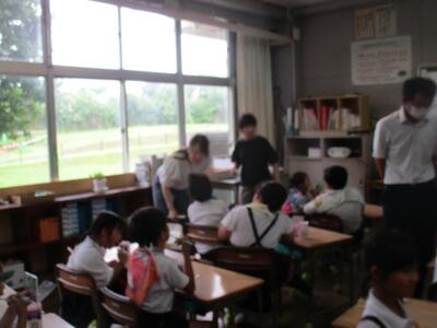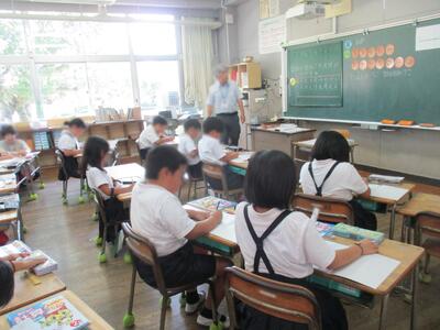 今朝は夏休み前の最後のPTA読み聞かせでした。どの教室も食い入るように絵本の挿絵を見つめる子どもたちの姿がありました。2冊、3冊と選んでくださっているので、楽しさが広がります。紙芝居を持ってきてくださった方や、親子で読み聞かせをしてくださった方もおられました。アイデア豊かにありがとうございました。
