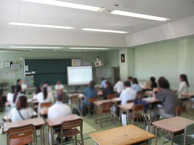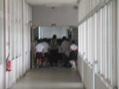 年に3回行う避難訓練。今回は、不審者の侵入を想定した避難訓練を行いました。不審者役の先生が教室に入ろうとするのを防ぎ、できるだけ教室から遠ざけるように誘導する。職員室でSOSを受けたら校内放送を行う。教室にいるだけでは危険だと判断したら、二次避難をする。