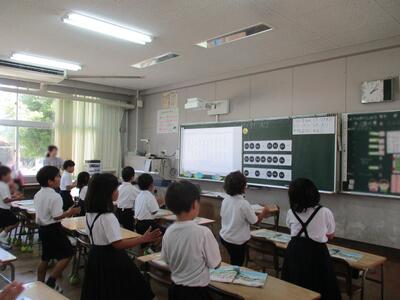 先週、ICT支援員の鹿島先生と一緒に、2年生がタブレットを使って学習していました。玉名市の学校に共通して導入されたタブレットドリルに取り組んだり、大きくなった夏野菜の写真をとって、観察日記をかいたり、2年生たちは幅広く活用できるようになっていました。子どもたちには、ICT機器の上手な使い手になってほしいと思います。