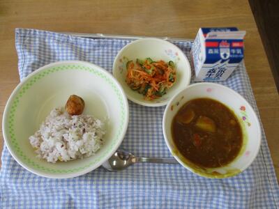 今日の給食は「雑穀ご飯、夏野菜カレー、カルちゃんサラダ」でした。カボチャなどの夏野菜がごろごろ入った美味しいカレーでした。6年生たちの配膳の様子は、手際がよく安心してみていられます。1年生からの毎日の積み重ねで、技能が身に付き、協力してできるようになっていくのですね。