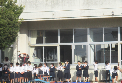 その前に、演奏を全校児童に披露する目的で行いました。