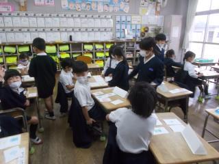 4年生が高道タイムで、友だちと楽しそうに話していました。