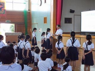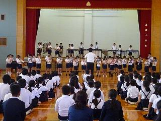 10月29日(火)の全校音楽では、3,4年生が合奏と合唱の発表をしました。