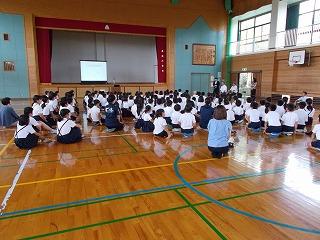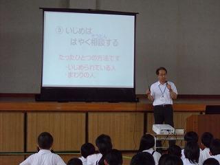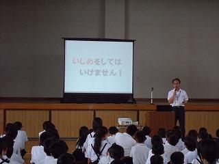 いじめを絶対に許してはならないということ、もしいじめにあったら相談をしてほしいということ等、子どもたちにお話をされました。