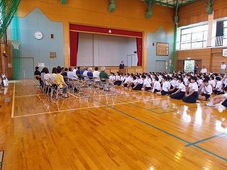子どもたち全員で、防犯パトロールでお世話になる方々にあいさつをしました。