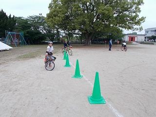 交通安全協会から2名の講師と、駐在所の警察官の方も来ていただき、子どもたちに指導をしていただきました。