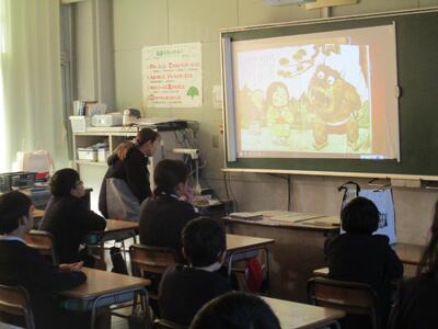 6年生たちは、米田先生と英語の学習。新しい年を迎えたことから、おせち料理の名前やその料理に込められた願い等について、英語を使って考えたり発言したりしていました。みんなでワイワイと和やかに授業が進んでいました。