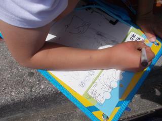 始めに紙芝居で、水に落ちたときどうすればよいかについて学びました。