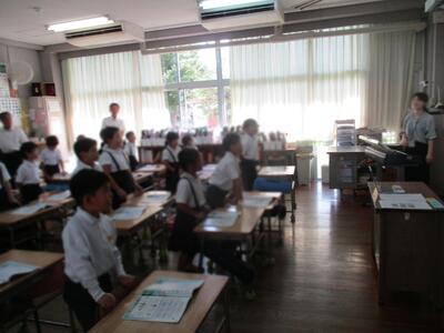 6年生たちは、来週に修学旅行を控え、戦争のことを学びました。この時間も西村さんに協力していただき、戦争を体験されたお父さまから聴かれた話を6年生たちに語ってくださいました。時代の流れがわかるようにと手作り年表を示したり、荒玉地域の戦争遺構の資料を持ってきてくださったり、自分たちの身近に戦争があったことを知り、思うことや考えることがたくさんあったと思います。ありがとうございました。