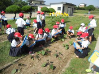1時間目、2年生が国語の学習で、野菜の観察をしていました。